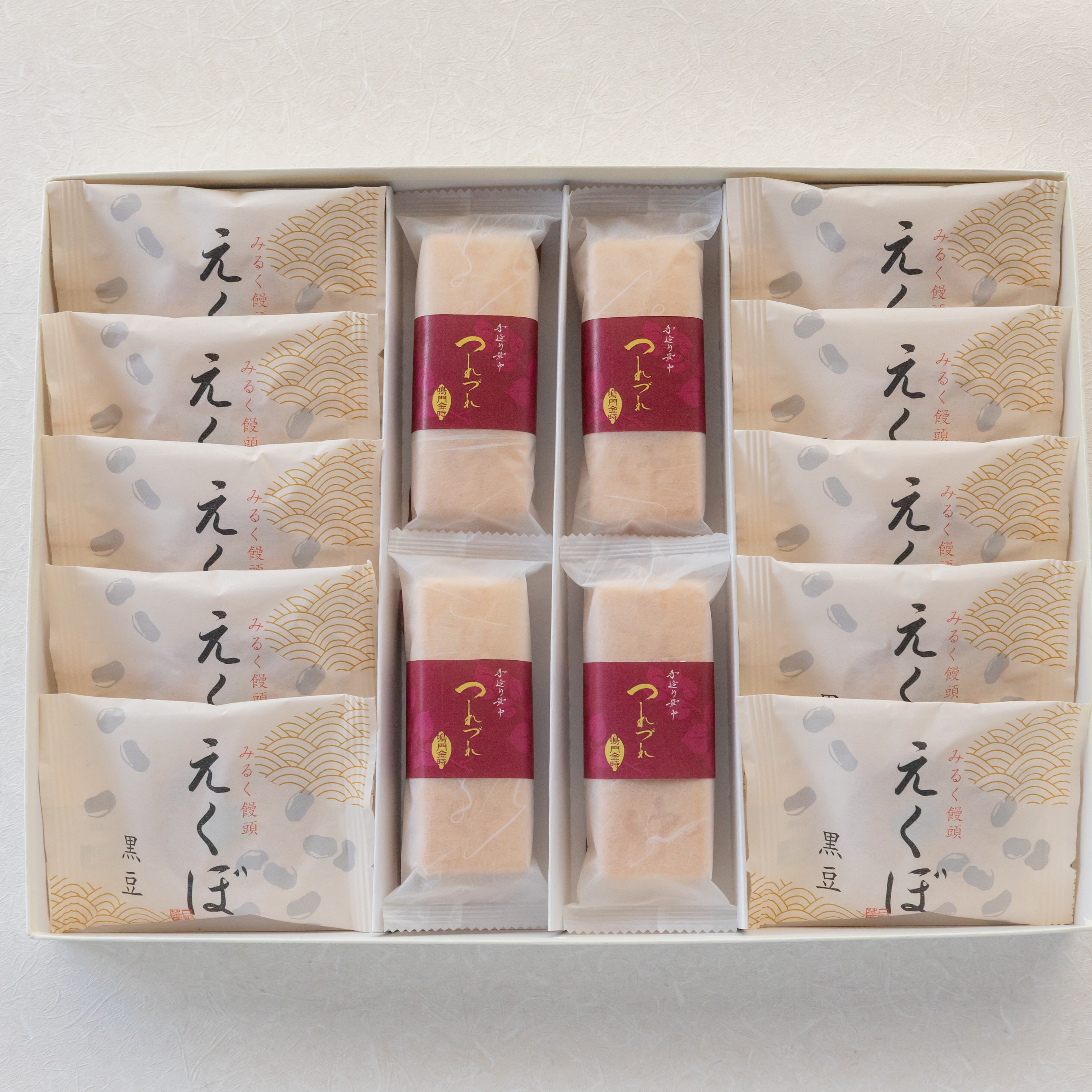 14個入:みるく饅頭えくぼ×10個、手造り最中つれづれ芋餡×4個