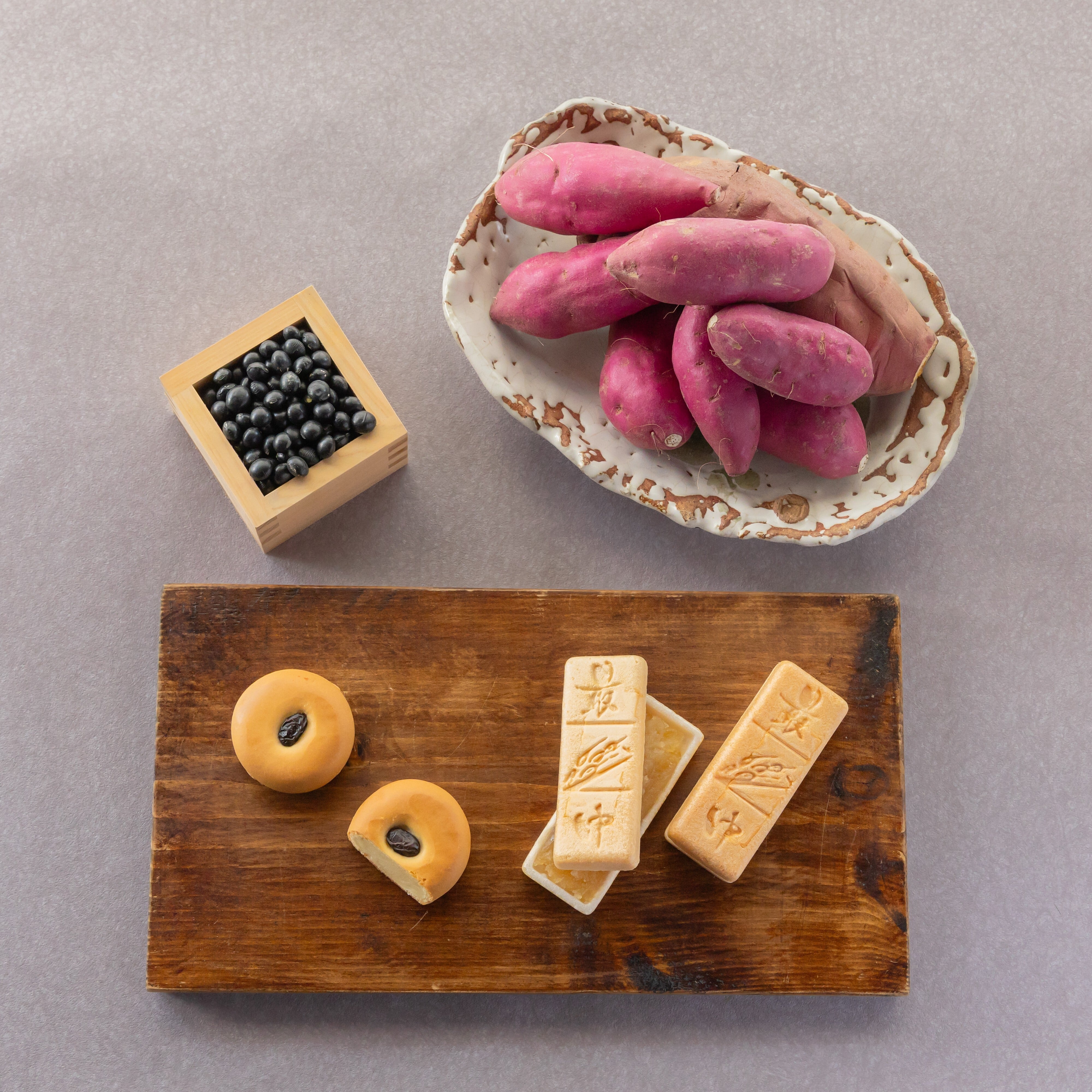 鳴門金時と白餡を合せた芋餡と、香ばしい最中種を組み合わせて食べる手造りタイプの最中です。サクサクの最中種で作り立ての食感をお愉しみいただける季節限定の最中です。先の方の『しあわせ』を願った合わせて食べる和菓子です。