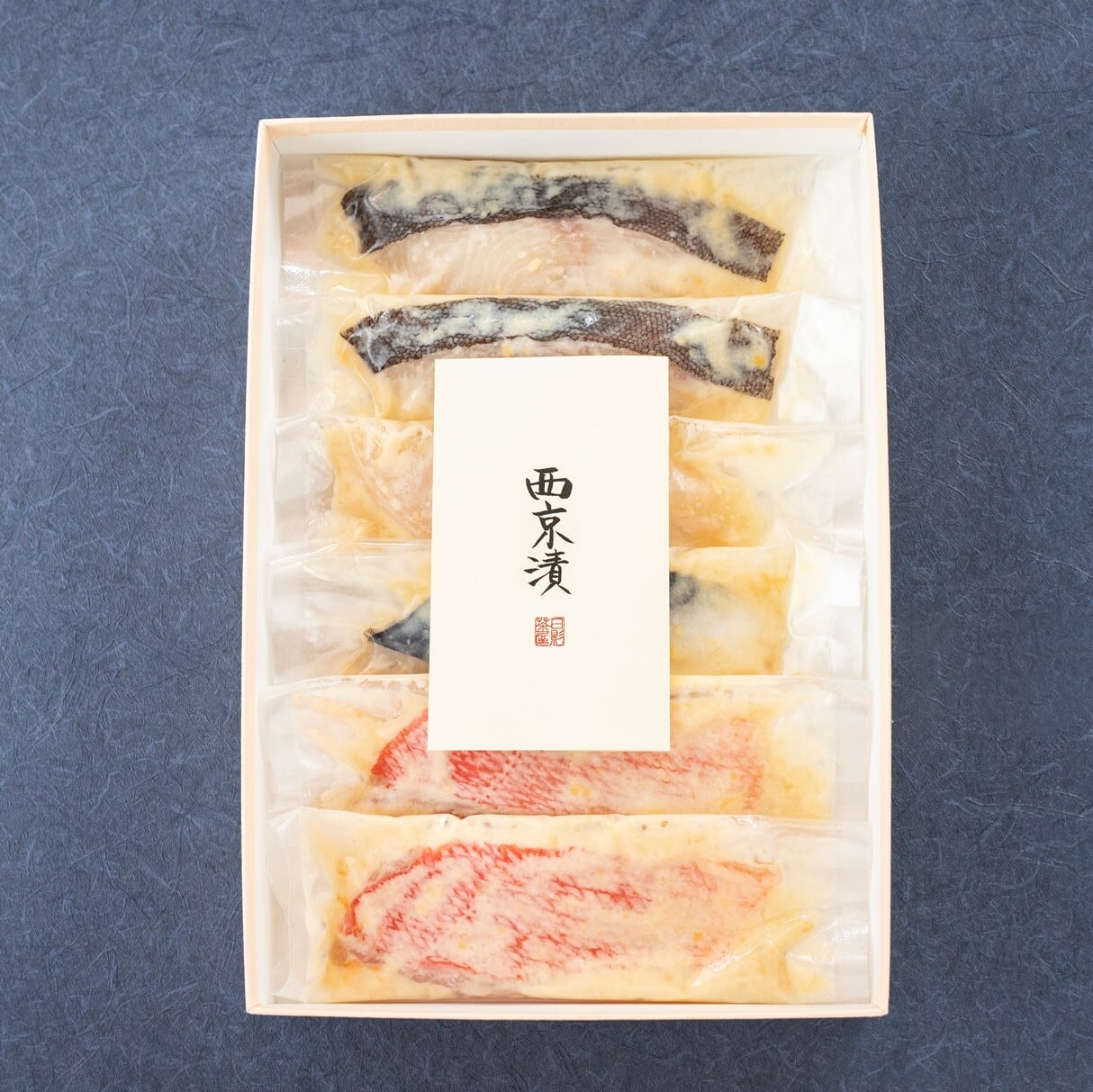 厳選された新鮮な魚を使用し、日影茶屋独自の西京味噌に漬け込むことで、豊かな風味と旨味を引き出しています。職人が伝統的な西京漬けの技法で1枚1枚丁寧に仕上げた逸品です。4種の旨味たっぷりの魚と甘みのある西京味噌が絶妙に絡み合い、食卓を彩る贅沢なセットです。