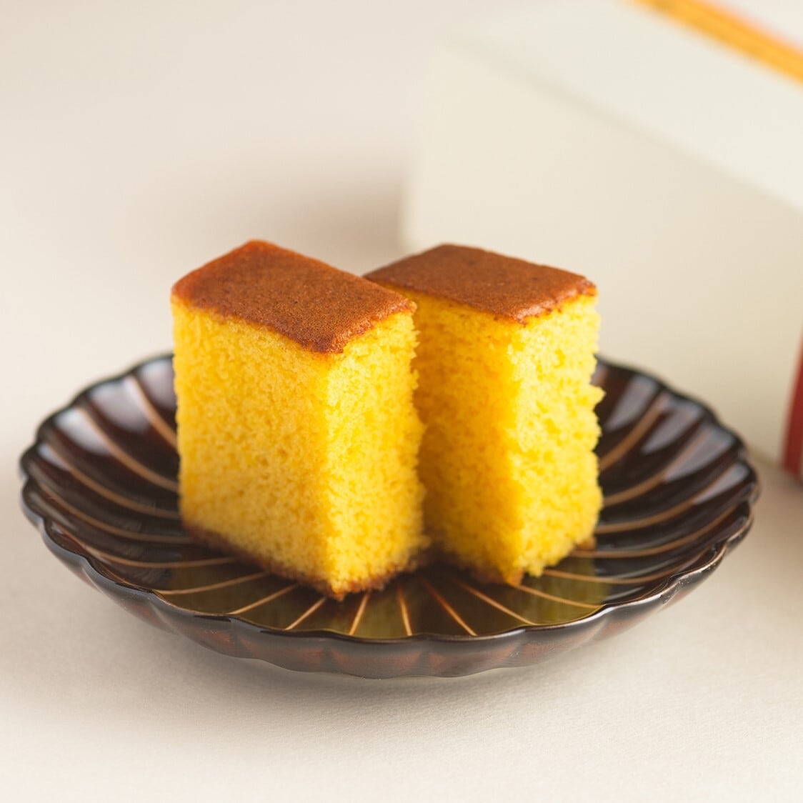 葉山日影茶屋の伝統のカステラです。明治後期、夏目漱石が日影茶屋に逗留していた頃、西洋料理にも長けていた八代目庄右衞門は「卵糖」と呼ばれたカステーラを焼き、もてなしておりました。