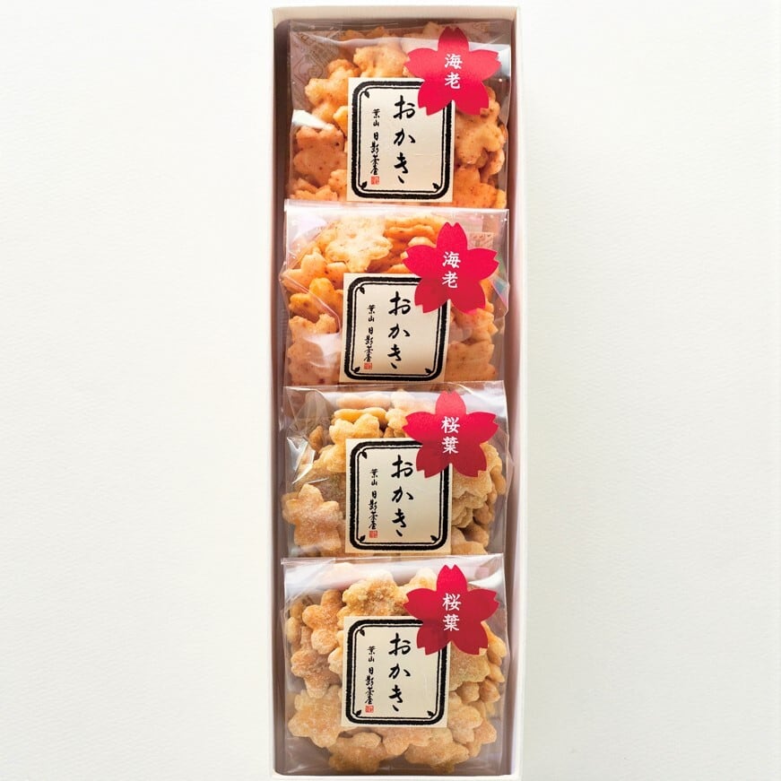 春の美味しさを感じさせるさくらおかき2種4袋入りの詰合せです。季節のお手土産にも最適な商品です。